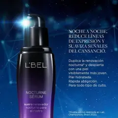 Suero Lbel renovador nocturno para el rostro. Concentrado antiedad de renovación nocturna para el rostro. 30 ml. Es un concentrado facial con ácido hialurónico. El concentrado reduce líneas de expresión y suaviza las señales del cansancio.