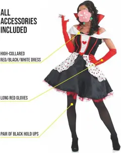 DISFRAZ REINA DE CORAZONES TALLA 2XL. DISFRAZ DE REINA DE CORAZONES, TALLA 2XL, INCLUYE ACCESOORIOS (GUANTES Y MEDIAS TIPO LIGUEROS)MIDE PECHO 120 A 130 CM, AXILA 51 CM SIN ESTIRAR, CINTURA 106 A 116 CM, CADERA 127 A 136 CM #disfraz