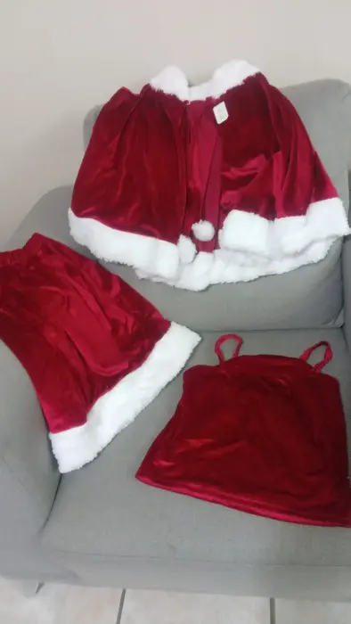 Trajecito de santa claus. Trajecito de top,falda y capa tela terciopelo ,esta totalmente nuevo.Es talla mediana no estira la tela .