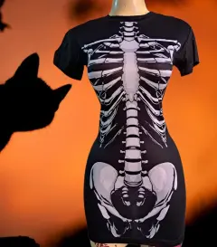 Vestido negro esqueleto, se puede usar como disfrazTela Algodón Unitalla