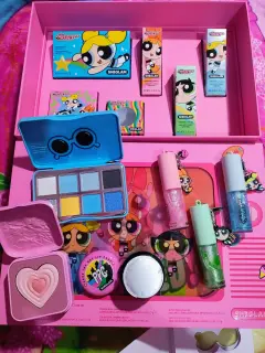 Set de maquillaje de colección Chicas super poderosas!! *Paleta de sombras de cada chica super poderosa, la paleta de sombras es de metal y los lentes son de imán *Iluminadores de Jelly con brillos*Gloss con un pequeño llavero *Blush en forma de corazón, con un toque de brillo*Bálsamo con ácido hialurónico!!! Todo nuevo y súper bonitos !!!!!