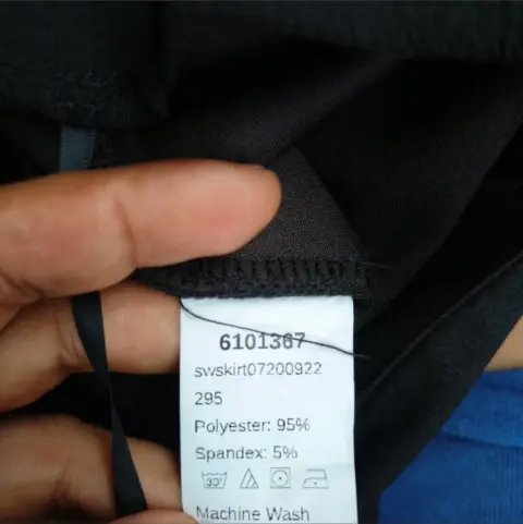 Bonita mini falda para dama, con una tela extra en la parte de enfrente la cual está sostenida con un "broche" y sobre sale del corte horizontal.