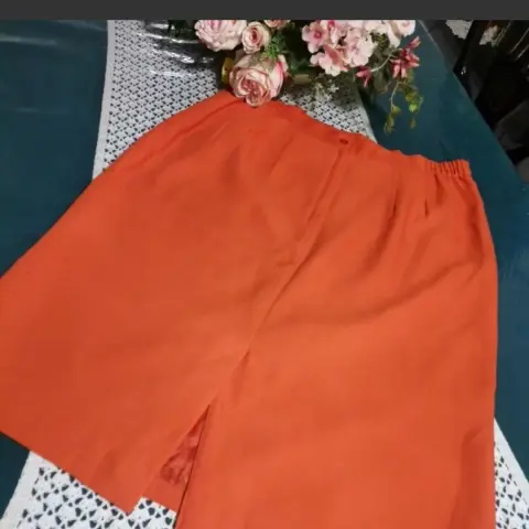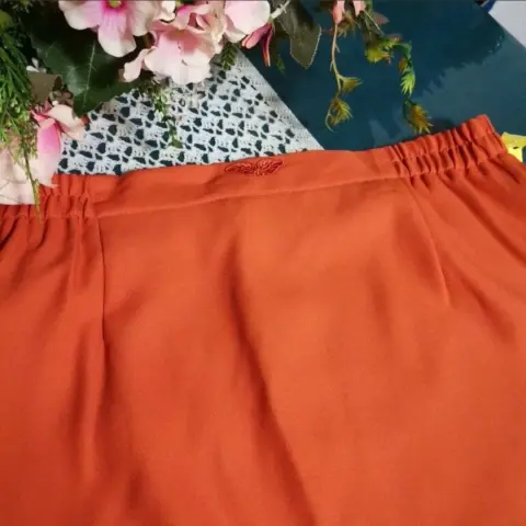 Falda larga naranja con resorte a los lado en perfecto estado sin ningún detalle sus medidas son cintura 47 cm pero estira hasta 56 cm largo 75 cm cadera 65 cm.