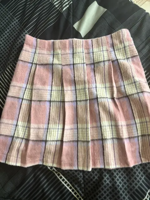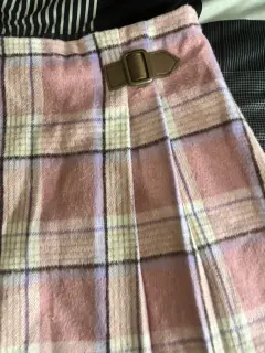 Falda corta a cuadros afelpada. Falda corta de cuadros con cinturón simulado y forro para niña, perfecta para los fríos