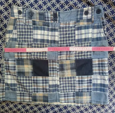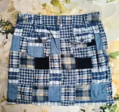 Bonita falda cuadrada, para dama, con doble tela como se muestra en imagen. Cierre enfrente, presillas para cinturón. Talla 8, 100% algodón.