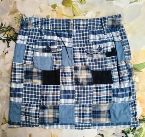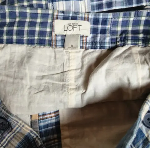 Falda cuadrada para dama LOFT. Bonita falda cuadrada, para dama, con doble tela como se muestra en imagen. Cierre enfrente, presillas para cinturón. Talla 8, 100% algodón.
