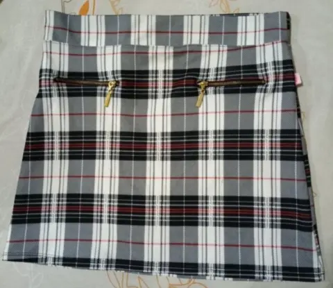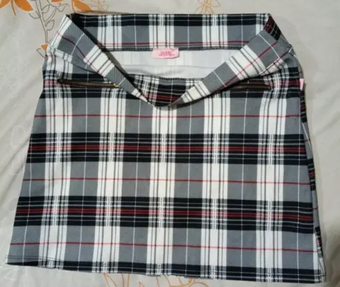 Falda de cuadros. Es una Falda que cuenta con 2 cierres color dorados de decoración, es de talla mediana y entalla muy bien.