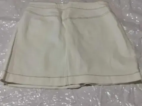 Falda tono beige de cintura mide 38 CM y de largo mide 42 CM los bolsos al frente son funcionales no tiene detalles
