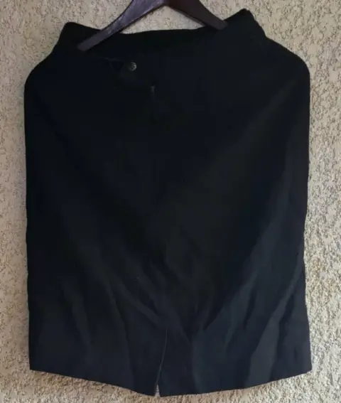 FALDA DE USO, COLOR NEGRA, 100% LANA, MARCA JONES NEW YORK,TALLA 8, DETALLES, LOS BOTONES SE COCIERON CON HILO CAFE, FACIL DE CAMBIAR, MIDE CINTURA 70 CM, CADETA 102 CM, LARGO 57 CM, COLR NEGRO