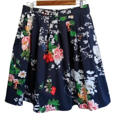 Falda floreada GRACE KARIN. Falda floreada GRACE KARIN Talla L diseño plisado, cierre oculta en la parte posterior, bolsillos, falda circular plisada voluminosa inspirada en los años 50 Medidas tomadas por un solo lado: *Cintura 39 cm *Largo 58 cm ⚜️ Por favor si vas a ofertar que sea solo porque tú compra será segura ⚜️