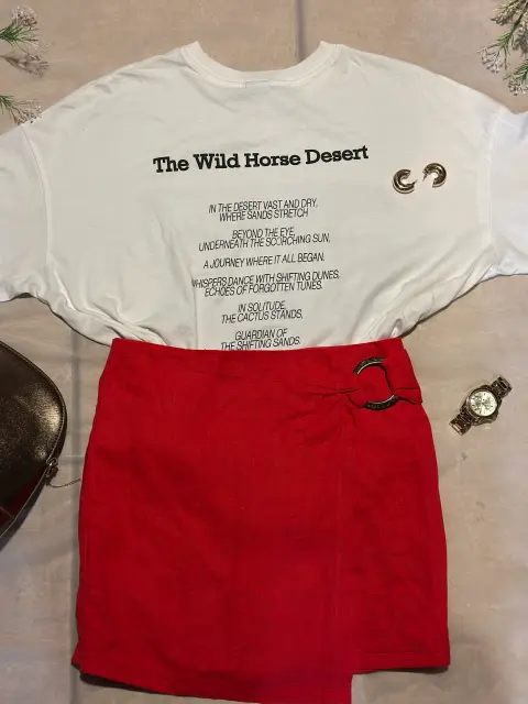 Falda roja - Forever 21 - Talla S - Largo 37 cm - Cintura 72 cm