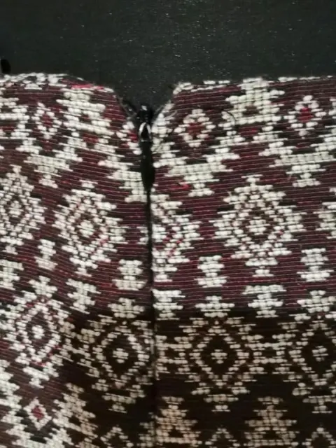 Falda grabado. Falda tipo bordada con colores vino, beige y negro, cintura mide 39cm y largo 44cmAl frente tiene tachuelas metálicas en diagonal