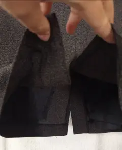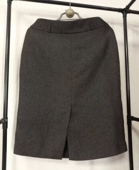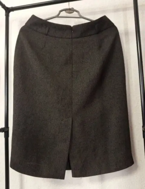 Falda elegante gris oscuro con abertura debajo por ambos lados, tiene cremallera y para colocarle cinturón.