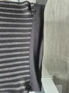 Falda lineas negras con dorado. Hermosa falda negra con lineas brillosas, tiene una textura como de sueter. Cintura co resorte, muy cómoda para epoca de frío. La talla es S, pero viene amplia