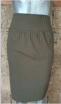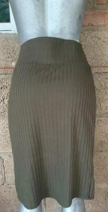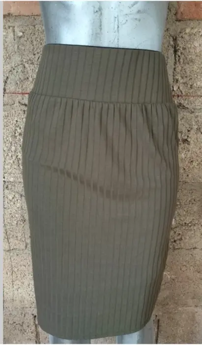 Bonita falda ajustada, tipo lápiz, parte de la cintura con resorte ancho, el color es un verde militar obscuro,.queda muy padre para salir, para oficina, etc