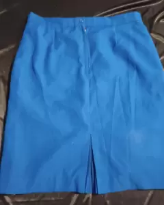 FALDA DE USO, TIPO LAPIZ,LLEGA ABAJO DE LA RODILLA,COLO AZUL ELÉCTRICO,TRAE FORRO EN PERFECTO ESTADO,MARCA AMAZON, MIDE DE CINTURA 86 CM, DE LARGO 61CM, DE CADERA 112 CM