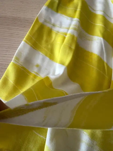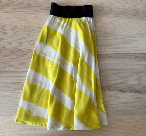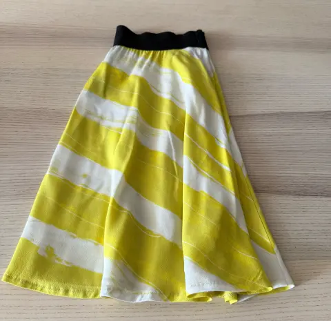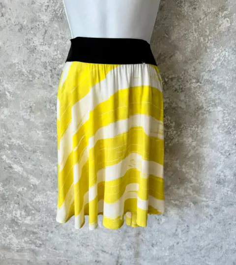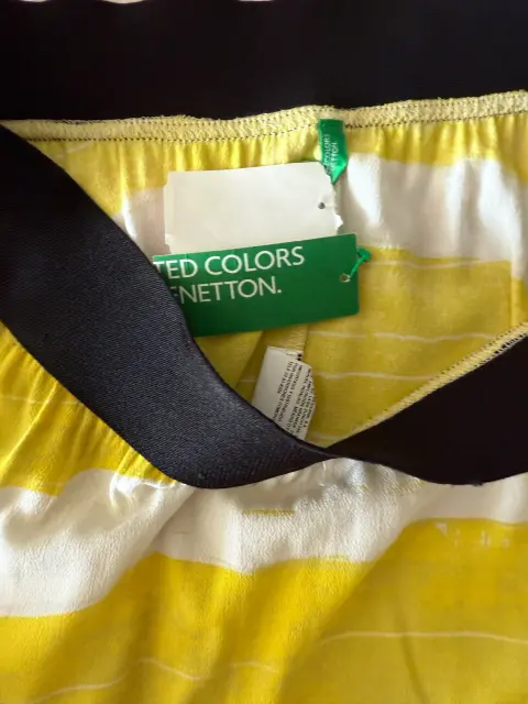 Luce fresca y con mucho estilo con esta falda de corte evasé de la reconocida marca United Colors of Benetton. Confeccionada en tela ligera y fluida, presenta un vibrante estampado de franjas