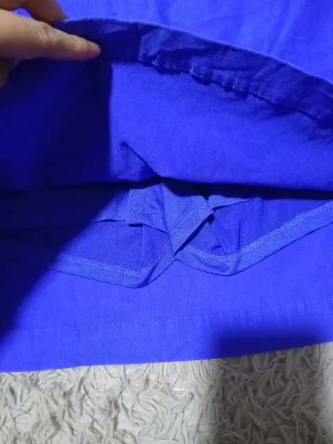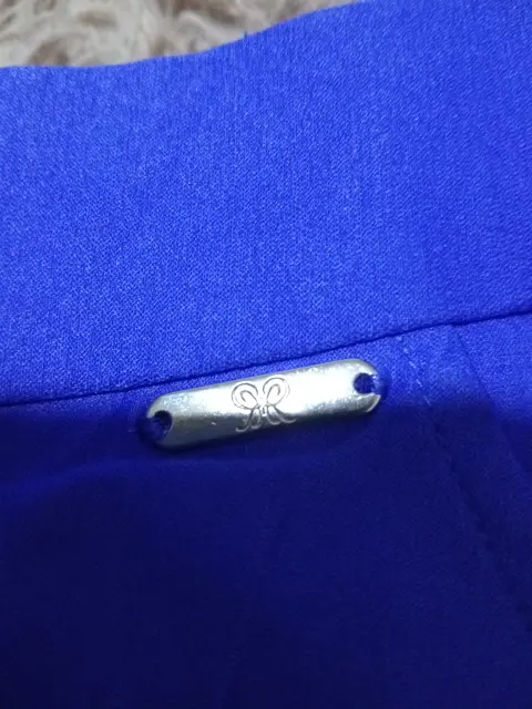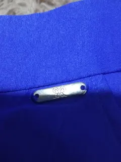 .Color azul rey, con bolsas funcionales, la tela estira.Esta súper hermosa