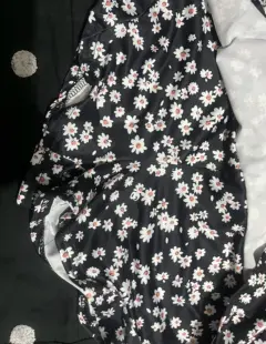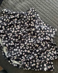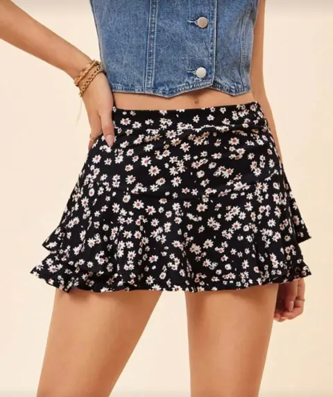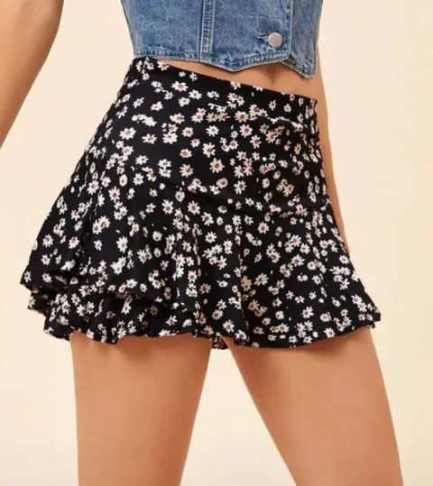 Mini falda de volantes, con estampado floral blanco y negro, short de protección incluido