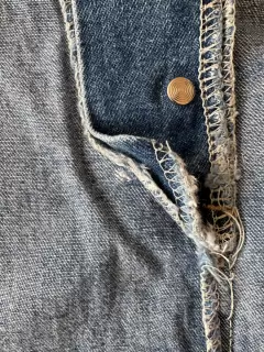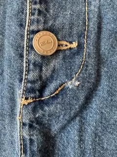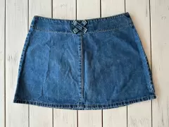 Minifalda de algodón mezclilla se abotona al frente, no tiene bolsillos. El detalle se ve en fotos. Talla: 7 Medidas: 35 cm de cintura, 44 cm de cadera y 34 cm de largo