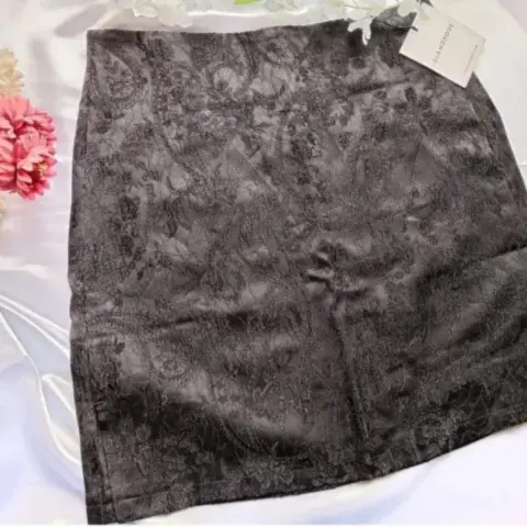 Minifalda negra. Impresionante minifalda negra con abertura lateral en brocado de Glamorous, diseñada para mejorar tu estilo. Esta falda cuenta con un intrincado patrón de brocado que le agrega un toque de lujo a tu atuendo. Estas son algunas de sus características:Diseño con abertura lateral para un toque contemporáneo.Cintura alta para un ajuste favorecedor.Fabricado 100% poliéster para mayor durabilidad y fácil cuidado.