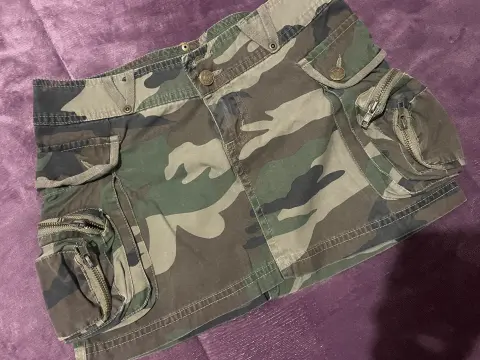 Hermosa Minifalda tipo cargo , verde militar, en excelente estado, sin ningún detalle.