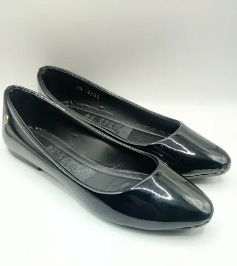 5 Balerinas Negro Charol. Zapato tipo flats o balerinas color negro, diseño charol liso puntal, suela baja antiderrapante cómoda. México Número #25cm. Pregúntame o visita mi closet para más modelos y numeración. Codigo Promocional para nuevos usuarios en la App en su primer compra.
