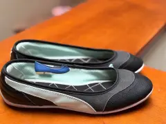 Flats puma negros con detalles verdes, cómodos excelentes condiciones poco uso