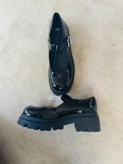 Un clásico siempre es un clásico!! Bonitos zapatos tipo Maryjanes en acabado de charol. No son piel. De corte cómodo y suela ancha. Perfectas con calcetas corta y jeans. Sin detalles. No mascotas y no fumadora. Más opciones en mi clóset. Buena idea para regalo o para usarlas para cualquier día con tus leggins.