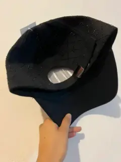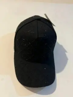 Gorra negra con aplicación de brillos. Hermosa gorra color negra, con aplicación de brillos en color negro .Ajustable por la parte de atrás por medio de un broche tipo cinturón .Unitalla .Nueva con etiqueta