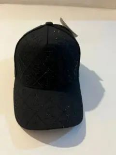 Hermosa gorra color negra, con aplicación de brillos en color negro .Ajustable por la parte de atrás por medio de un broche tipo cinturón .Unitalla .Nueva con etiqueta