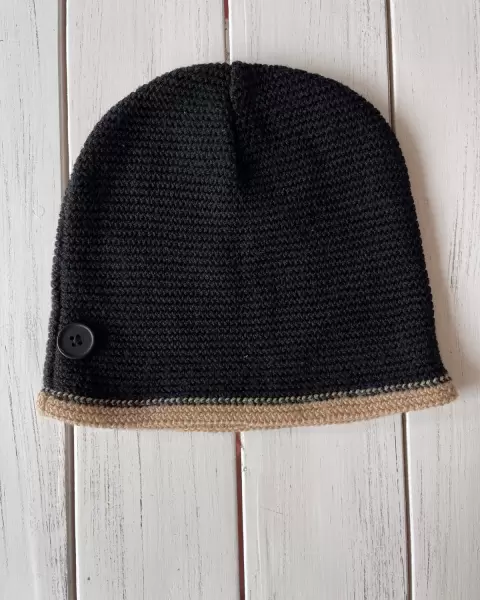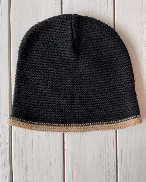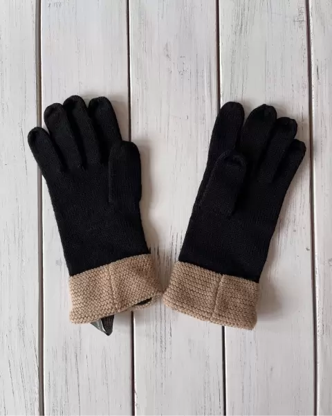 Gorrito y guantes negros con orilla café, tejidos en 100% lana, UNITALLA El gorrito tenía un par de puntos sueltos que se le cosieron.