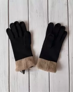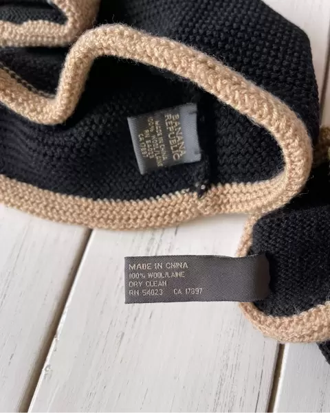 Juego de guantes y gorrito Banana Republic. Gorrito y guantes negros con orilla café, tejidos en 100% lana, UNITALLA El gorrito tenía un par de puntos sueltos que se le cosieron.