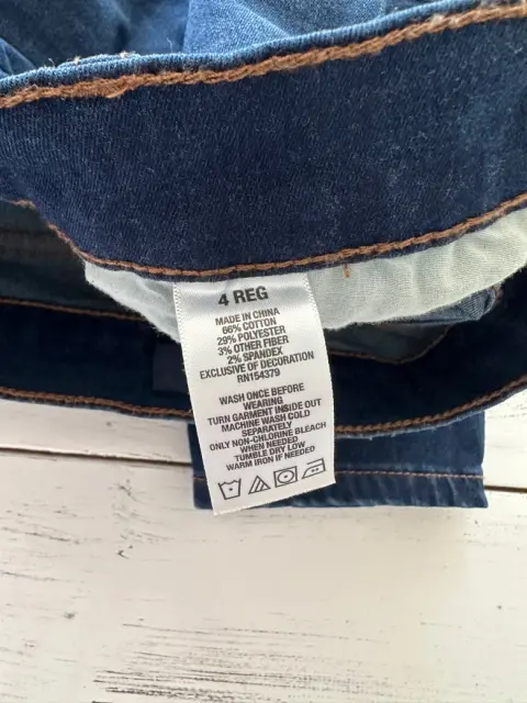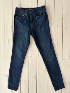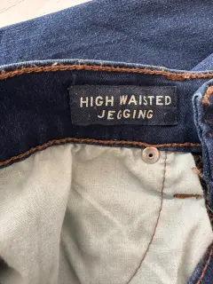 Jegging tiro alto a la cintura, mezclilla delgada y suave, stretch.Talla: 4 Medidas: 32 cm cintura, 35 cm cadera, 25 cm tiro, 70.5 cm entrepierna.Sin detalles.
