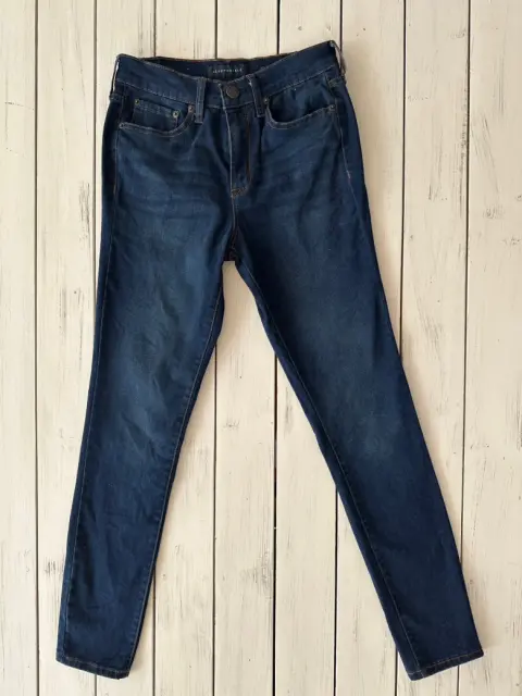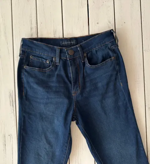High waisted jegging Aéropostale. Jegging tiro alto a la cintura, mezclilla delgada y suave, stretch.Talla: 4 Medidas: 32 cm cintura, 35 cm cadera, 25 cm tiro, 70.5 cm entrepierna.Sin detalles.
