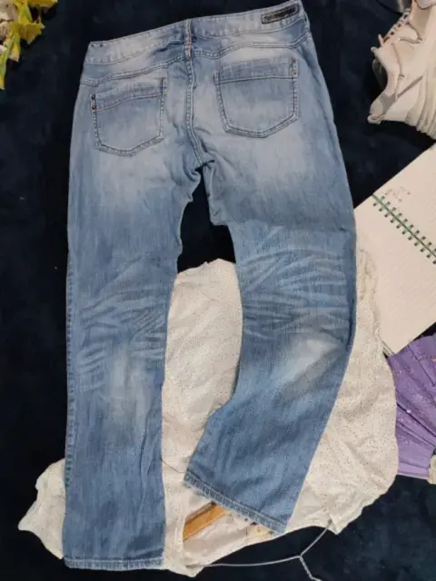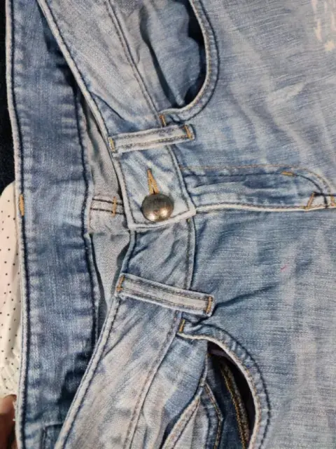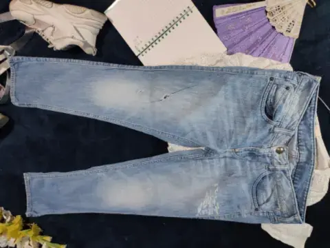 •Te interesa? Escucho ofertas•Deseas varias prendas? armo tu paquete✨Jean's azul con deslavado (wax) y pequeñas roturas. Tiro medio/alto (llega al ombligo), tela rígida (estira poco). Bolsillos al frente y atrás. Corte recto. Talla 5 (posible 7)