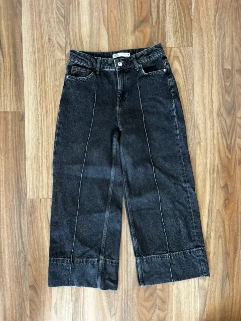 Pantalón de mezclilla negro, con detalles a los lados blancos (sin usar)talla 2 us.