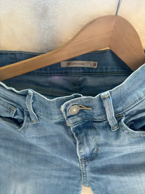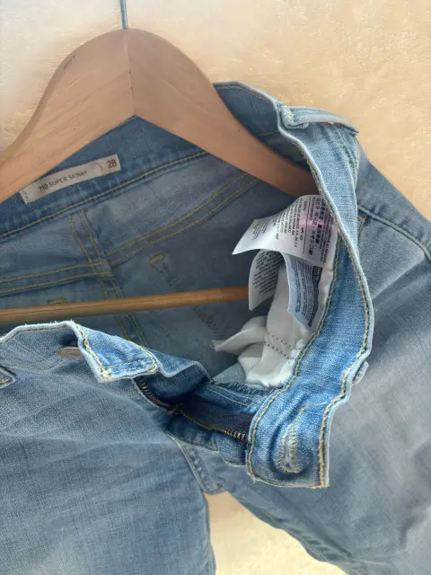 Skinny 710 súper skynnyColor Azul claro Talla 28Material mezclilla cierre 1 botoneEstado Usado buenas condiciones Precio 350