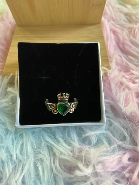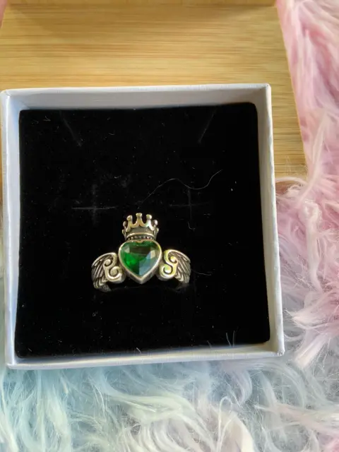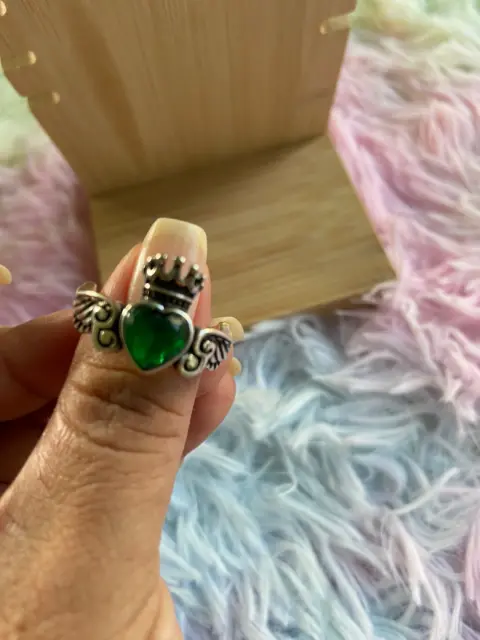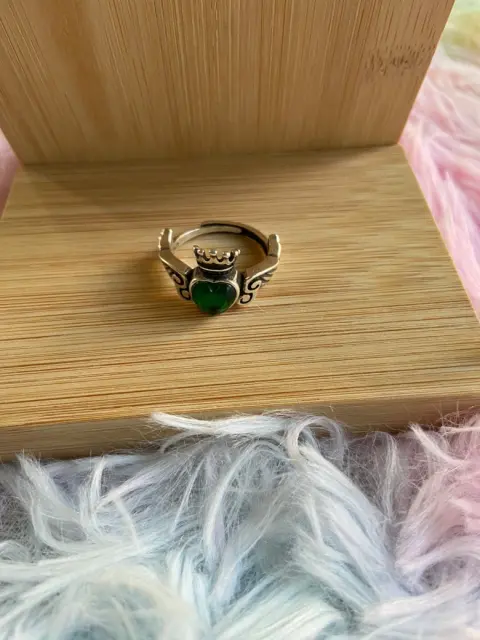 Anillo Alas de Angel Green. Hermoso anillo de baño de plata nuevo con piedra imitación de circón, anillo ajustable.
