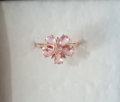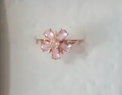 Anillo de flor de zirconia rosa de material de oro laminado número 8.5 con duración reforzado