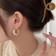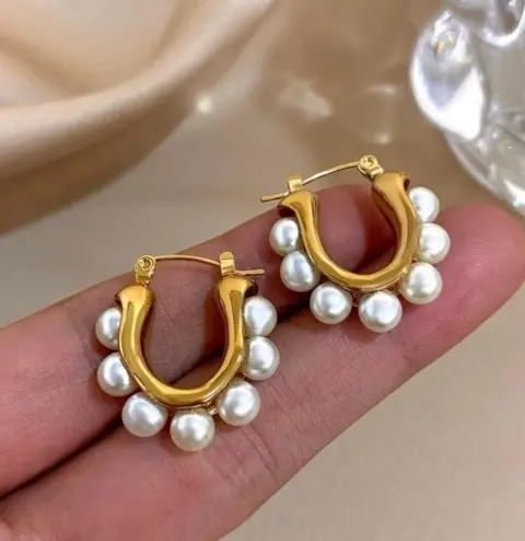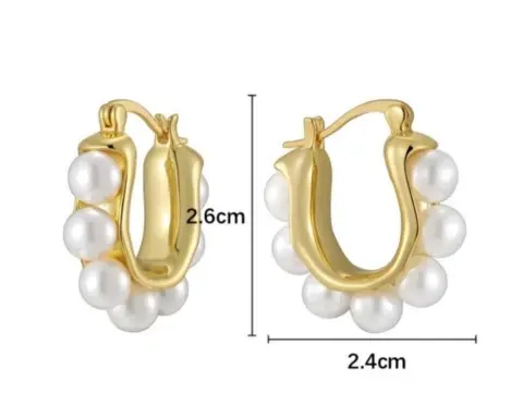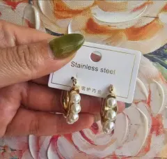Aretes aceeo inoxidable con perlas. Aretes arracadas doradas con perlitas sintéticas. Material es acero inoxidable Medidas en imágenes