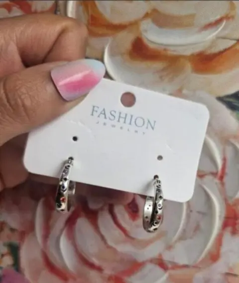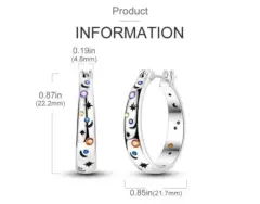 Arracadas redondas en color plata con criconias multicolor. El material es baño de plata. Las medidas están en imágenes