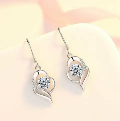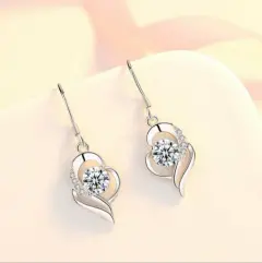 Elegantes aretes de corazón, hechos de plata S925, los aretes vienen grabados.