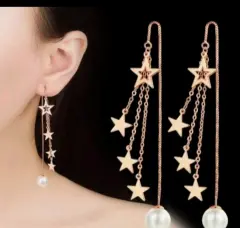 Aretes de estrellas con perla (largos). Hermosos aretes largos en forma de estrella con perla. Hechos de plata con incrustaciones de perla de imitación.
