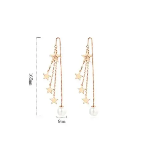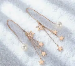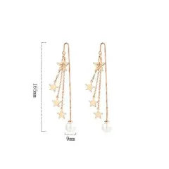 Hermosos aretes largos en forma de estrella con perla. Hechos de plata con incrustaciones de perla de imitación.