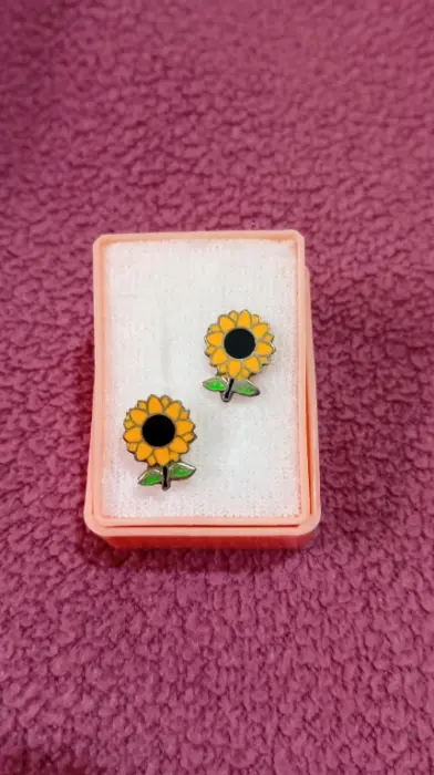 Aretes con figura de girasol hechos de plata. Esmaltados. Vienen quintados. Incluyen cajita. Nuevos .