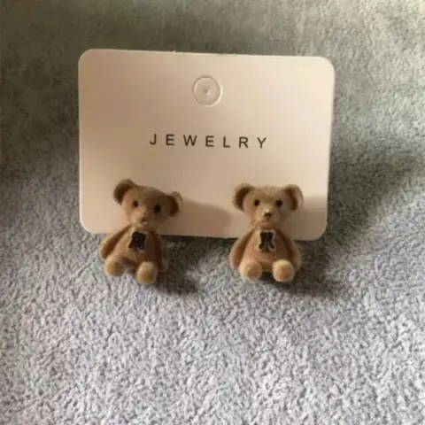 Aretes de oso 🐻. Hermosos y tiernos aretes de oso, son de terciopelo, la aguja de los aretes son de plata S925 y vienen grabados en la aguja.