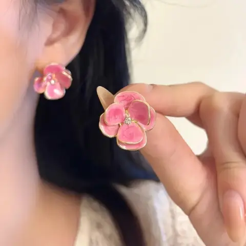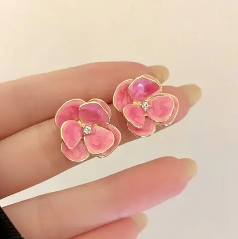 Aretes orquideas rosas. Aretes en forma de orguideas rosad Última imágen artículo real. Material metal esmaltado Medidas en imágenes Mod.A0292311