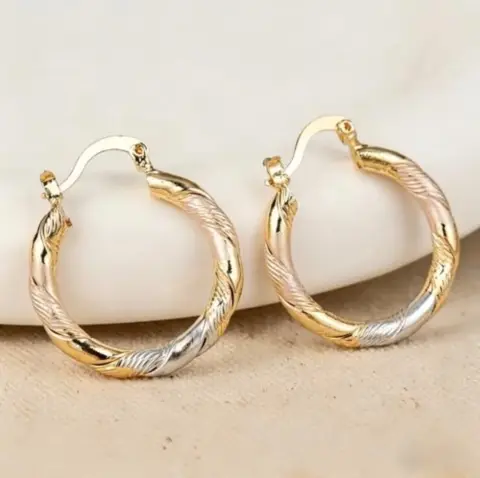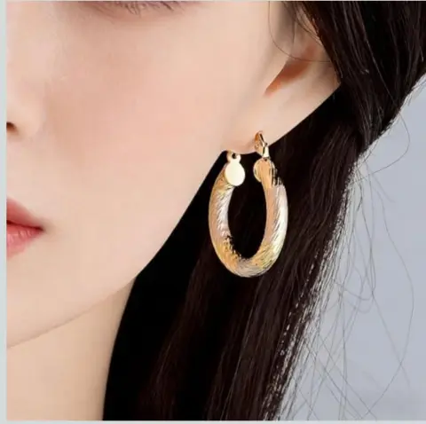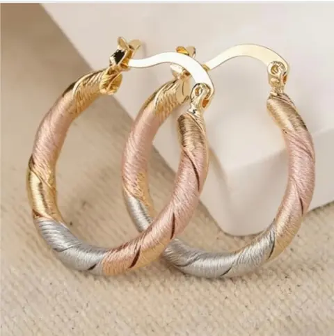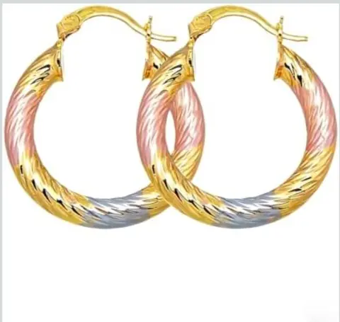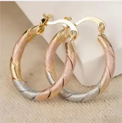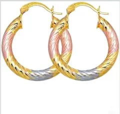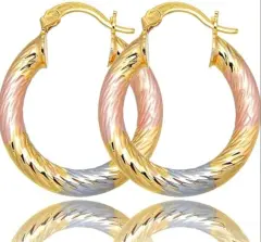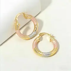 Aretes Rosa Dorado. Arete de aro clásico Elegante patrón de rombo en relieve, elegante regalo de joyería para las orejasOro laminadoNuevos