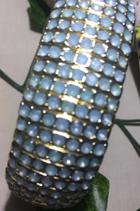 Bellísimo Brazalete Amrita Singh, Kenmare (esposa) Ancha elástica con cristales turquesa, interior con baño de oro.